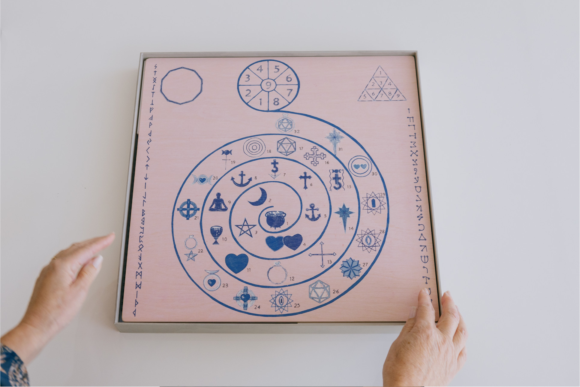 Tabuleiro de madeira com selo de autenticidade Uma peça única que traduz, em cada detalhe, a essência sagrada deste caminho.